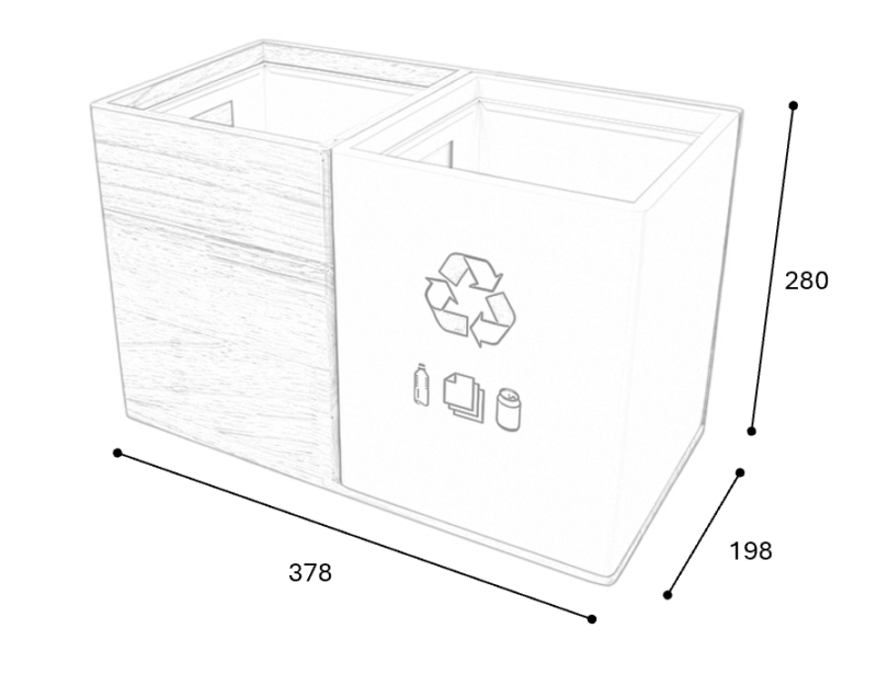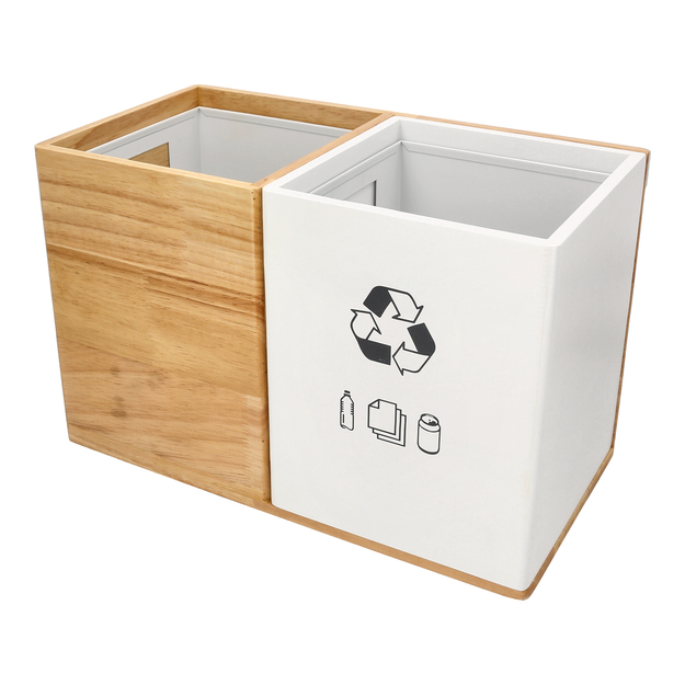 Papelera de reciclaje rectangular Adesign Kaizen, madera, cubeta interior de metal, con logotipo de reciclaje