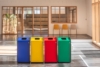 Papelera de reciclaje gris de 80L con amplia apertura frontal para facilitar la extracción de la bolsa. Disponible en varios colores para crear islas de reciclaje.