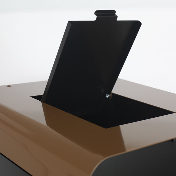 Papelera de reciclaje marrón de 80L con amplia apertura frontal para facilitar la extracción de la bolsa. Especialmente diseñada para la gestión de biorresiduos con su tapa. Disponible en varios colores para crear islas de reciclaje.