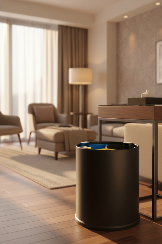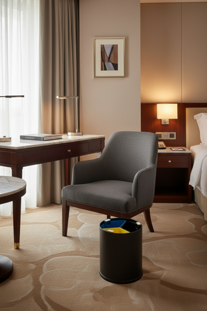 - Favorece la separación de residuos y fomenta el reciclaje responsable en espacios profesionales. Una solución práctica para reducir el impacto ambiental sin renunciar al diseño.