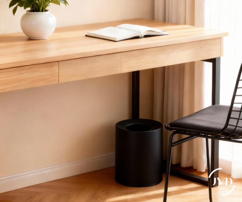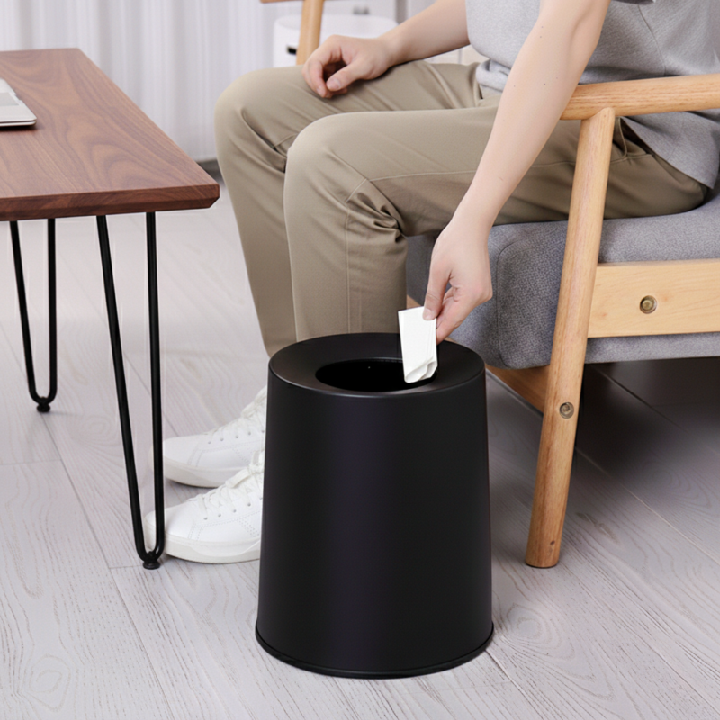 Resistente al agua y a la humedad, esta papelera compacta se adapta fácilmente a espacios reducidos, pudiendo colocarse junto a muebles o bajo lavabo. Su diseño sobrio y contemporáneo encaja en entornos hoteleros que priorizan la estética y el uso intensivo diario.