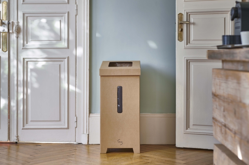 Kit de 3 cubos de cartón 100 % FSC o reciclado. Capacidad de 75 L con amplia apertura y visualización del nivel de llenado. Los cubos se entregan planos para reducir costes de transporte. Fabricados en Francia.