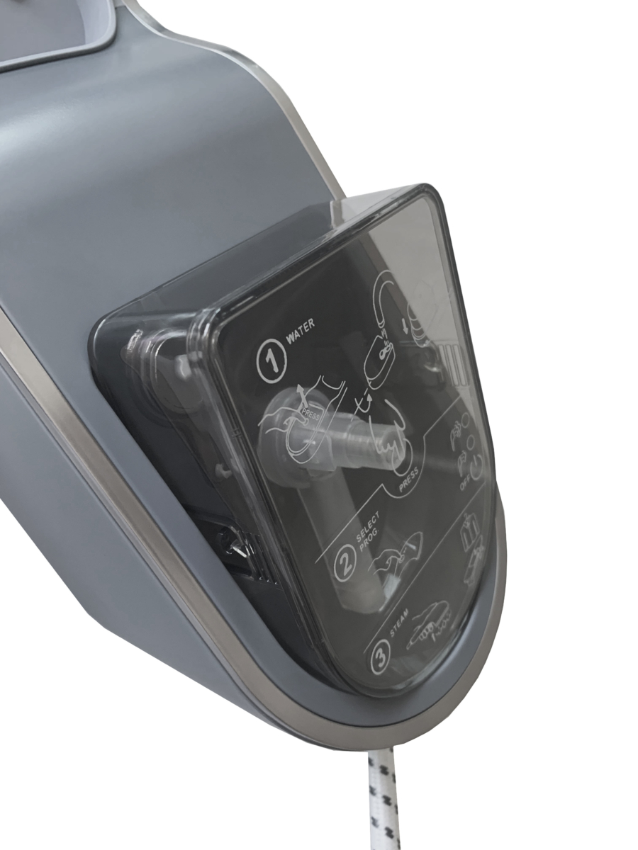 Velyss 2 en 1 Plancha y Vaporizador, gris antracita. Compacto con depósito de agua de 330 mL. Fácil de guardar y perfectamente adaptado a la hostelería. Eficaz contra la covid-19.