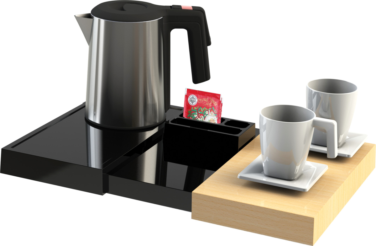 Porta cápsulas reversible de bienvenida Orchestro modulable en melamina negra.