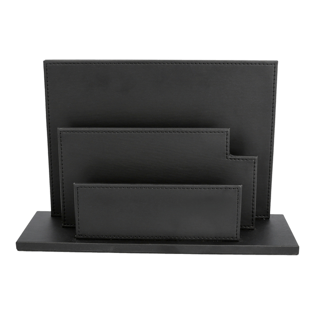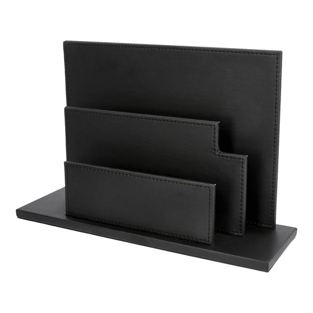 Revistero Adesign Charme: elegante y funcional, este revistero negro en cuero sintético con 2 compartimentos es perfecto para organizar revistas y folletos en hoteles, combinando sofisticación y practicidad.