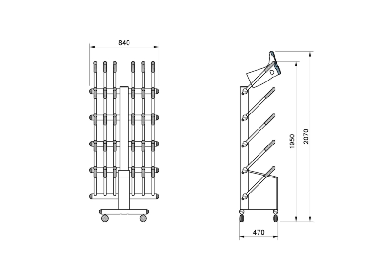 Dimensiones | Alto del producto (mm) : 1950Ancho del producto (mm) : 840Profundidad del producto (mm) : 470 |