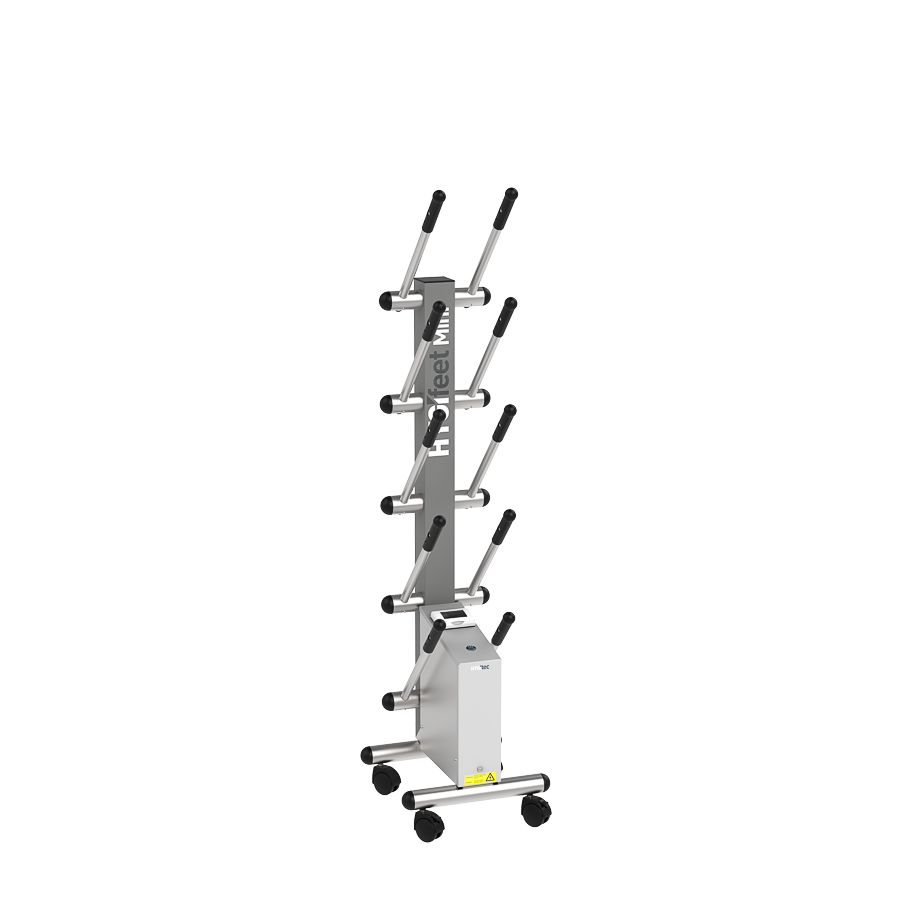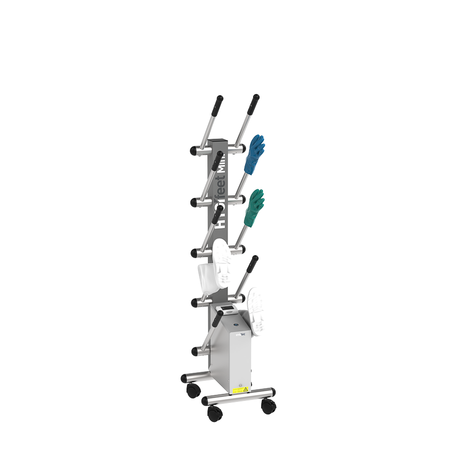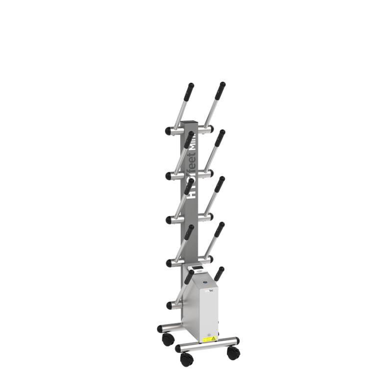 Reconocido por su eficacia, HYGIfeet mantiene todo tipo de calzado (botas altas, zapatos bajos). Compacto y móvil, HYGIfeet seca y desinfecta el interior del calzado sin productos químicos, eliminando olores, bacterias y moho.