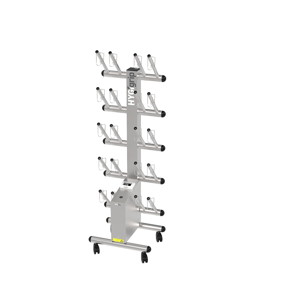 Secador de guantes HYGIgrip para 10 pares, de un solo lado, en acero inoxidable 304L.