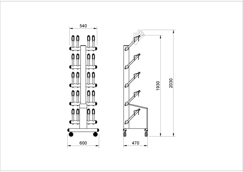 Dimensiones | Alto del producto (mm) : 1950Ancho del producto (mm) : 540Profundidad del producto (mm) : 470 |