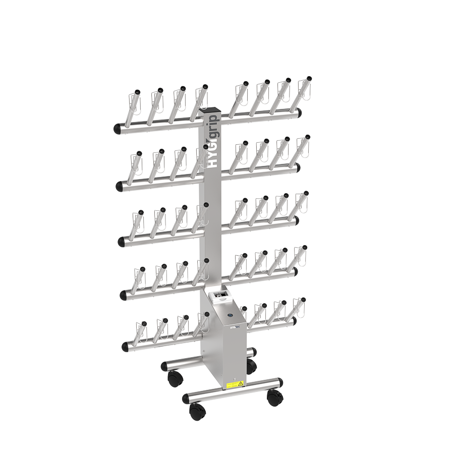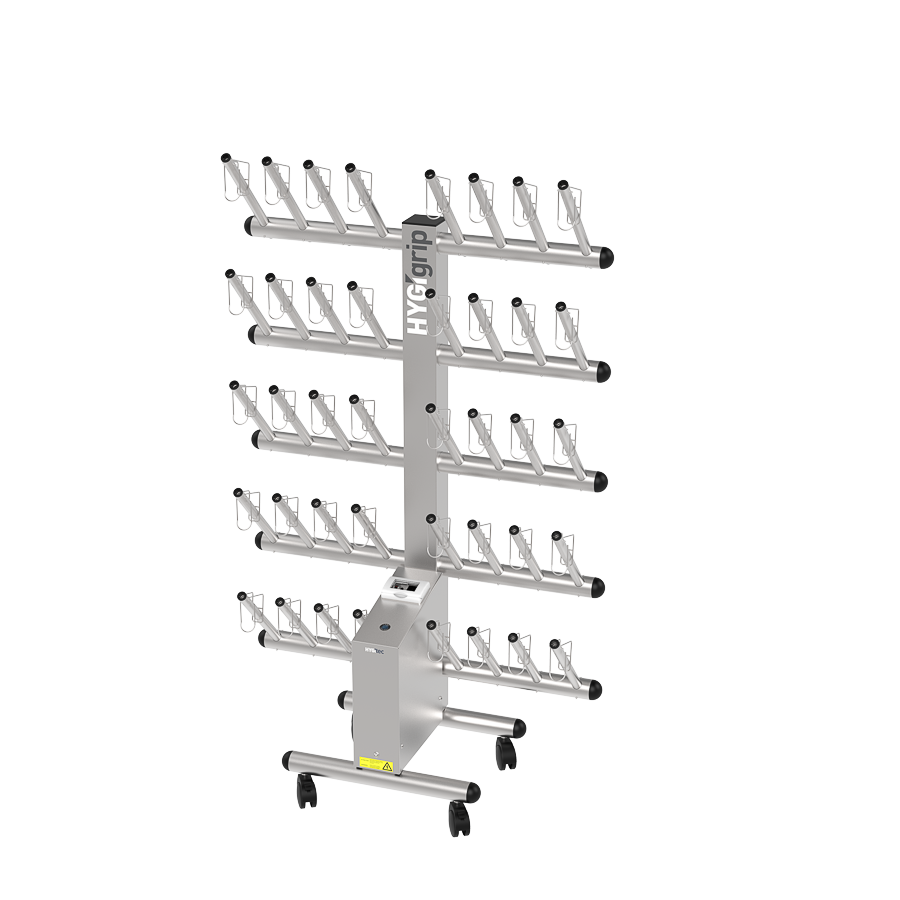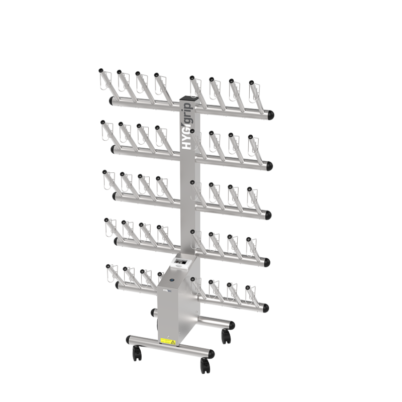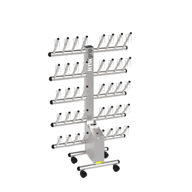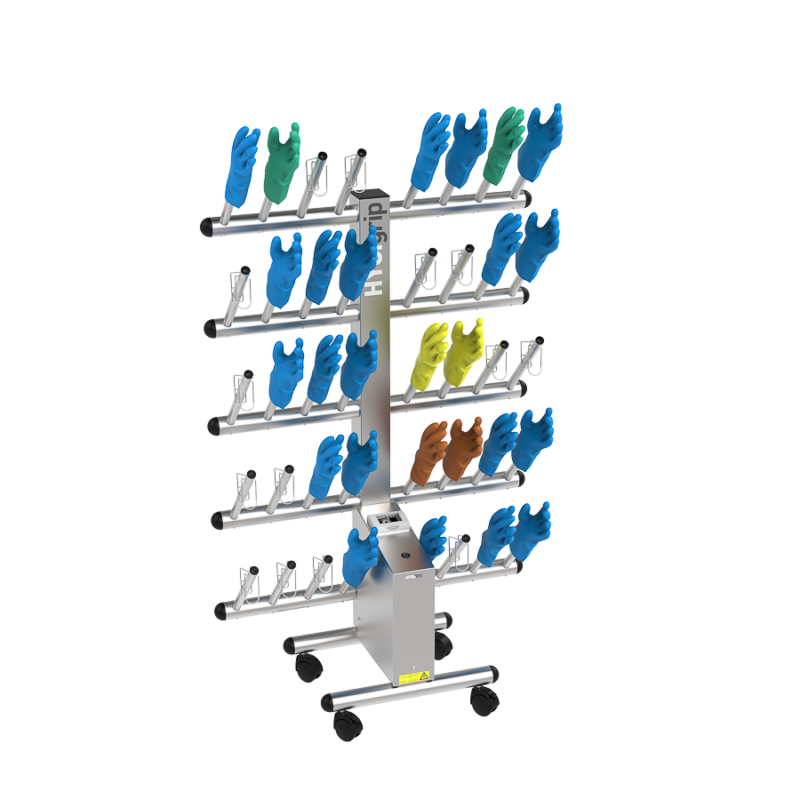 Secador de guantes HYGIgrip para 20 pares, de un solo lado, en acero inoxidable 304L.