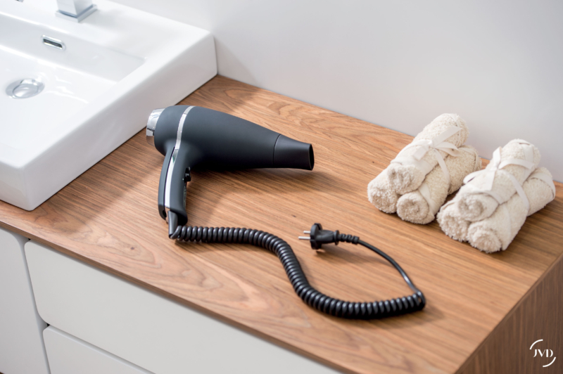 Secador de pelo Alteo pistola blanco de 1875 W, se activa con solo tomarlo gracias a su mango patentado LighTouch. 6 configuraciones de secado y equipado con sistema ionizante. Diseño exclusivo de JVD.