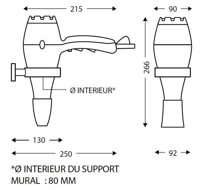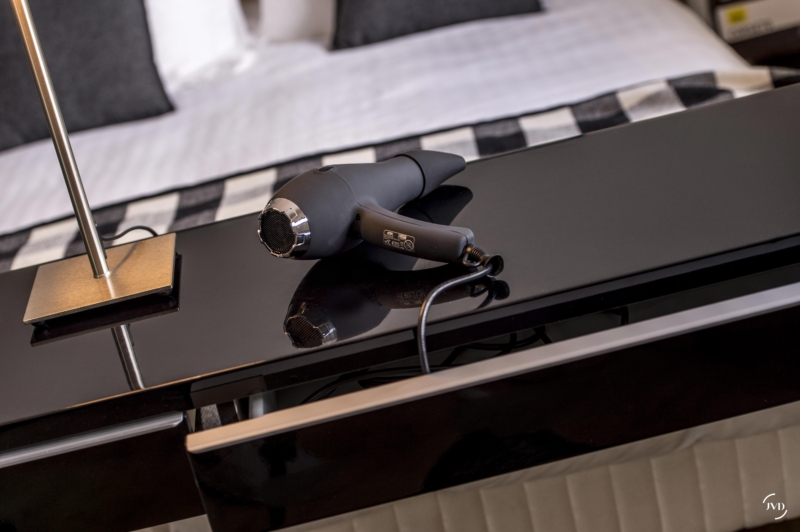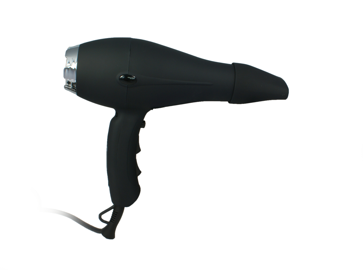 Secador de pelo IBIZA pistola negra 1875 W, con 6 configuraciones de secado y un sistema ionizante. Instalación en volumen 2.