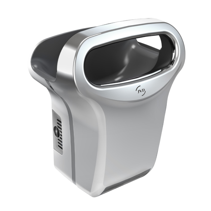 Secamanos Exp'Air+ aluminio automático de aire pulsado, equipado con motor sin escobillas (brushless). Antivandálico con carcasa de aluminio y adaptado para personas con movilidad reducida. Garantía de 5 años.
