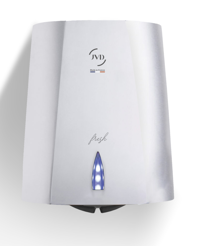 Además de secar perfectamente las manos, el secamanos Sup'Air Fresh con tecnología patentada neutraliza los malos olores presentes en el aire en espacios de hasta 30 m².