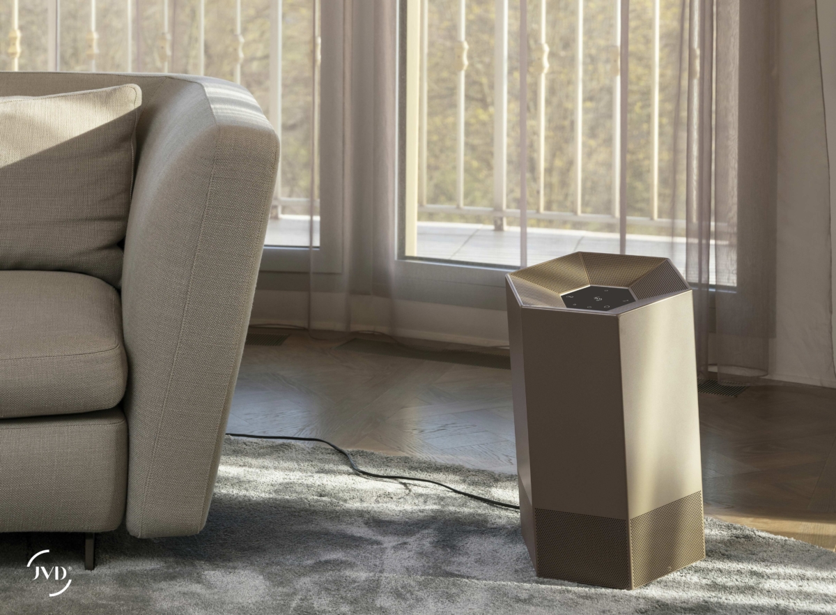 Purificador de aire profesional Shield Bronce, fabricado en Francia, conforme a la norma NF B44-200, cubriendo una superficie de hasta 60 m².
