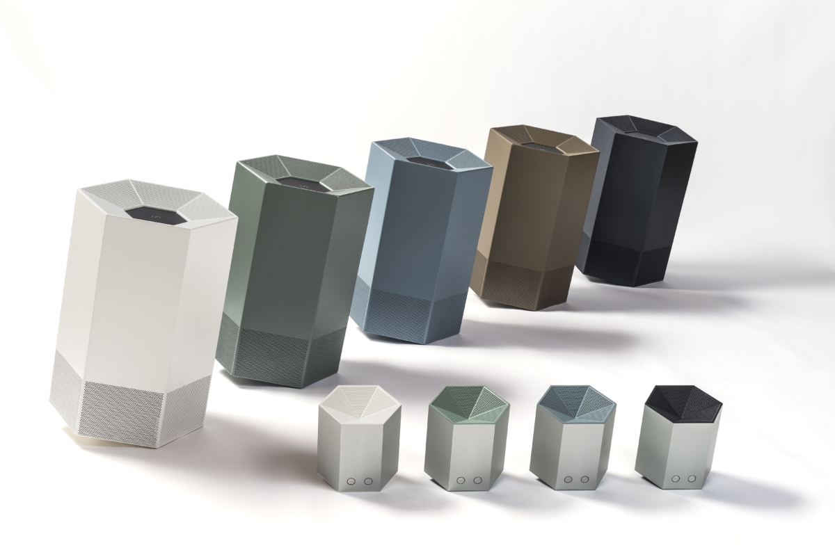 Purificador de aire profesional Shield Verde Malaquita, fabricado en Francia, conforme a la norma NF B44-200, cubriendo una superficie de hasta 60 m².