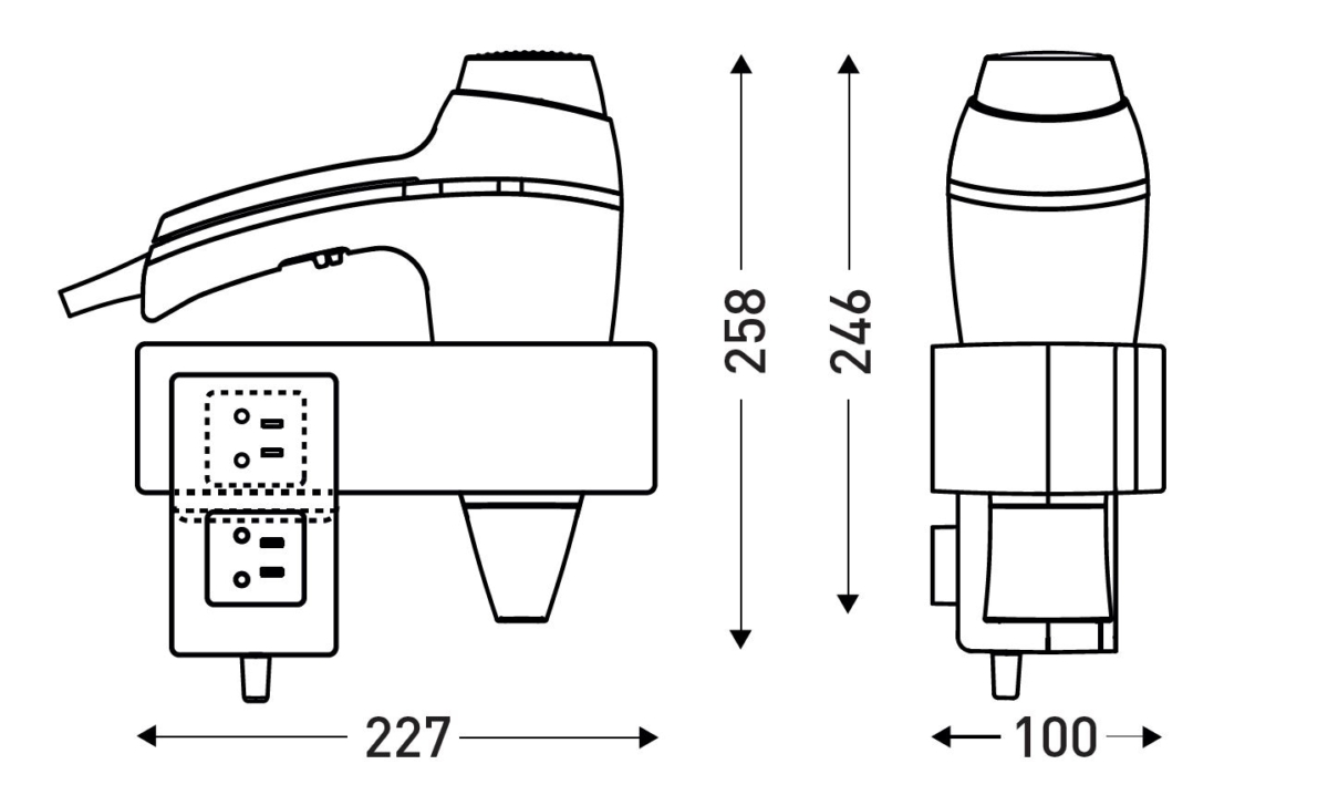 | Dimensiones | Alto del producto (mm) : 246Ancho del producto (mm) : 227Profundidad del producto (mm) : 100 |