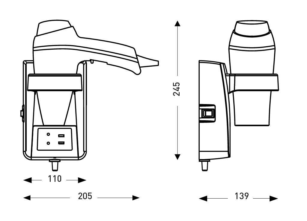| Dimensiones | Alto del producto (mm) : 245Ancho del producto (mm) : 205Profundidad del producto (mm) : 139 |