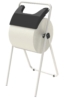 Soporte de pie para bobina industrial con una sierra de plástico integrada en la tapa.