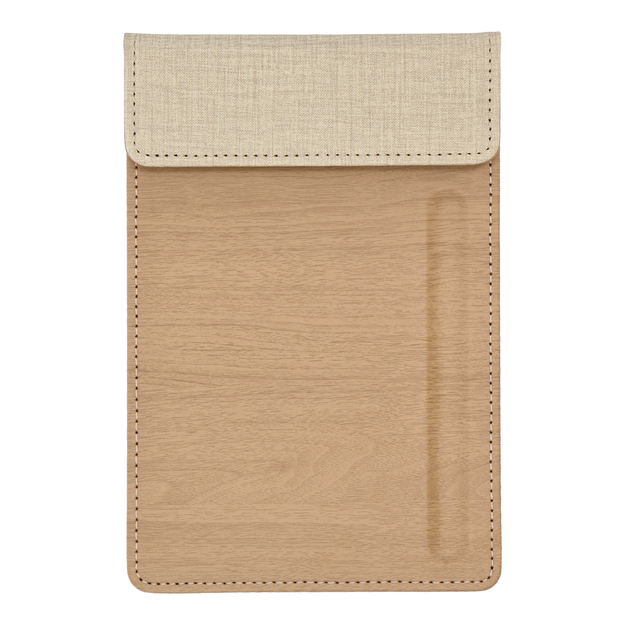 Soporte para bloc de notas Adesign Kaizen: combinando estilo y practicidad, este soporte en cuero sintético con acabado bimaterial (lona beige y madera clara) permite mantener un bloc de notas al alcance de la mano. Ideal para aportar un toque de elegancia y funcionalidad en las habitaciones de hotel.